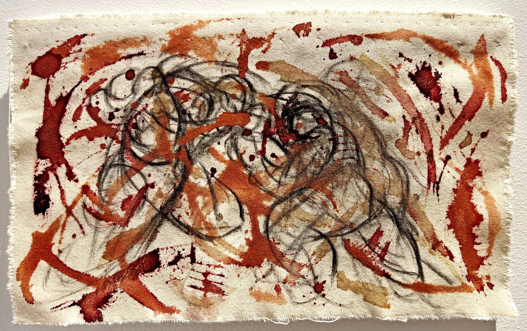 Don't Let Go Without A Fight Charcoal, black tea, Manjishtha root and beetroot on canvas 7.5" x 13.25" 2025 Available through WheelHouse Art